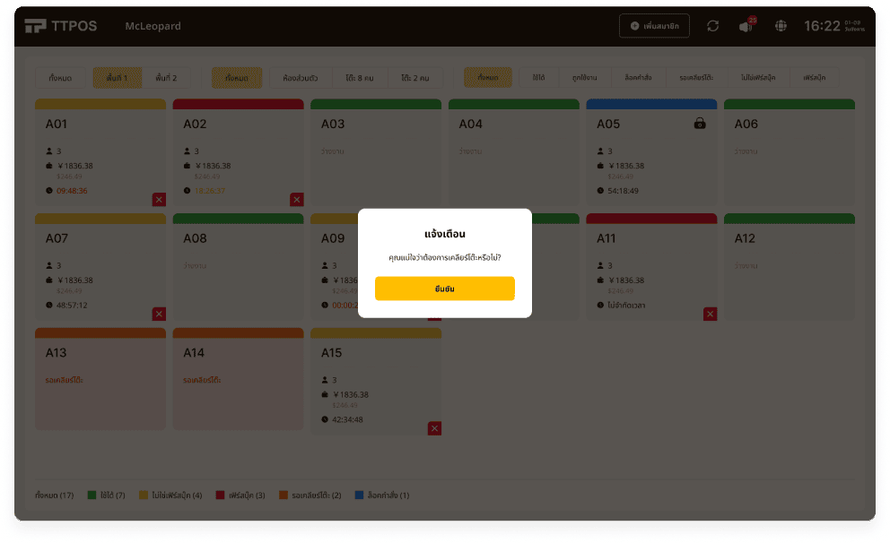 ติดตามสถานะการใช้โต๊ะได้แบบเรียลไทม์ ชัดเจนในพริบตา สะดวกสำหรับพนักงานเสิร์ฟในการบริหารจัดการพื้นที่รับประทานอาหารได้อย่างมีประสิทธิภาพ
